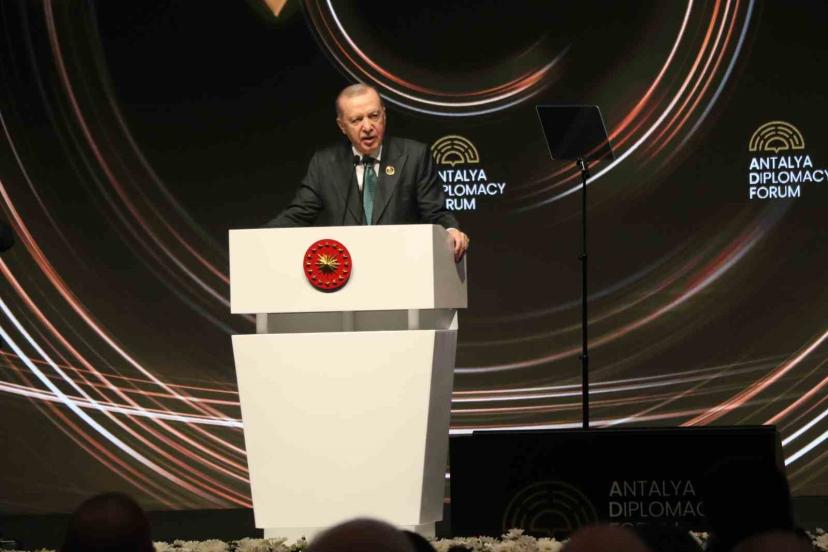 Bu yıl beşincisi düzenlenen Antalya Diplomasi Forumu’nun kısa sürede ulaştığı noktaya dikkat çeken Erdoğan, organizasyonda emeği geçen Dışişleri Bakanlığı’na ve forumun temellerini atan Antalya Milletvekili Mevlüt Çavuşoğlu’na teşekkür etti. Erdoğan, "Bugün görüyoruz ki Antalya Diplomasi Forumu; küresel aklın, global vicdanın ve özellikle de geleceğe dair umudun ortak kürsüsü haline gelmiştir" dedi.