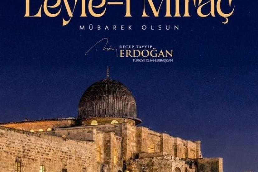 Cumhurbaşkanı Recep Tayyip Erdoğan, "Aziz milletimizin ve İslam aleminin Leyle-i Miraç’ını tebrik ediyor; bu mübarek gecenin tüm insanlığa hayırlar getirmesini, huzura vesile olmasını Rabb’imden niyaz ediyorum" dedi.