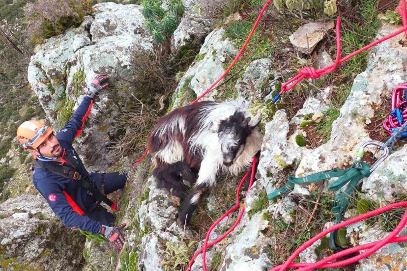 Burdur’un Bucak ilçesinde dağlık alanda mahsur kalan keçi, ekiplerce kurtarılarak sahibine teslim edildi.