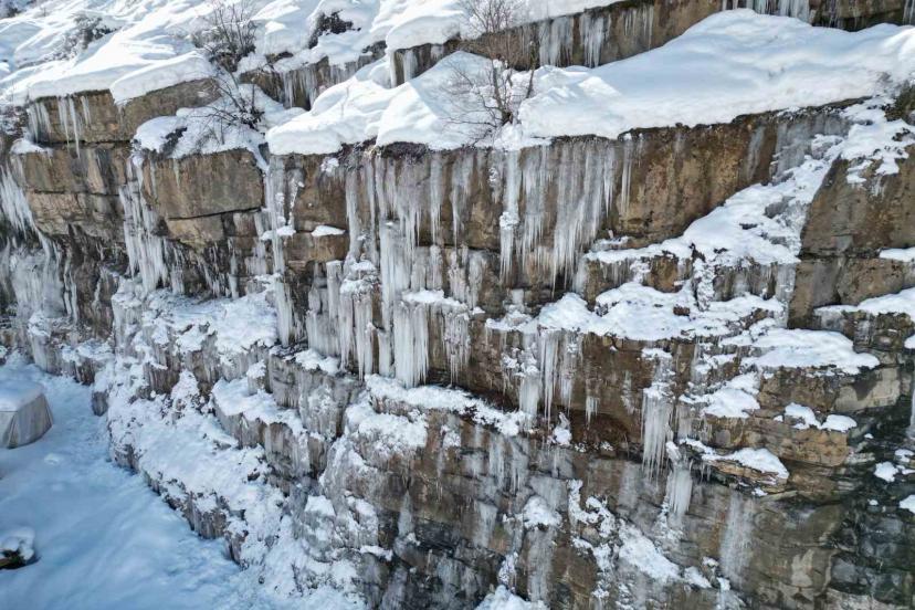 Şırnak’ta çetin geçen kışla birlikte dağlarda buzdan şelaleler oluştu. Dev sarkıtların oluştuğu bölgelerde her yer buz pistine döndü.