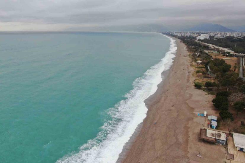 Antalya’da dün akşamdan bu yana etkili olan şiddetli rüzgar, dünyaca ünlü Konyaaltı Sahili’nde dev dalgalar oluşmasına neden oldu.