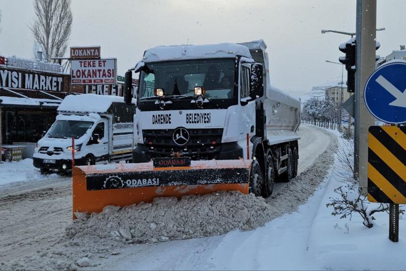 Malatya’nın Darende ilçesinde etkili olan kar yağışının ardından belediye ekipleri karla mücadele çalışmalarını aralıksız sürdürüyor.