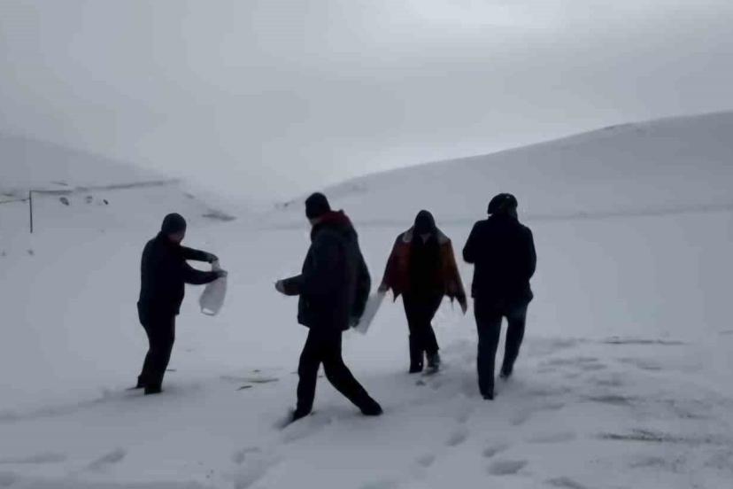 Kar yağışının etkili olduğu Darende ilçesinde öğretmen ve öğrenciler dağlık bölgelerde ekmek, buğday, ot gibi besin maddelerini doğaya bırakarak hayvanların yiyecek bulmasına yardımcı oldu.