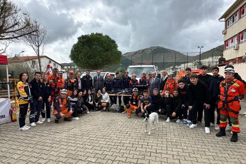 Muğla’nın Datça ilçesinde Şehit Ersoy Yorulmaz Anadolu Lisesi’nde deprem tahliye tatbikatı gerçekleştirildi.