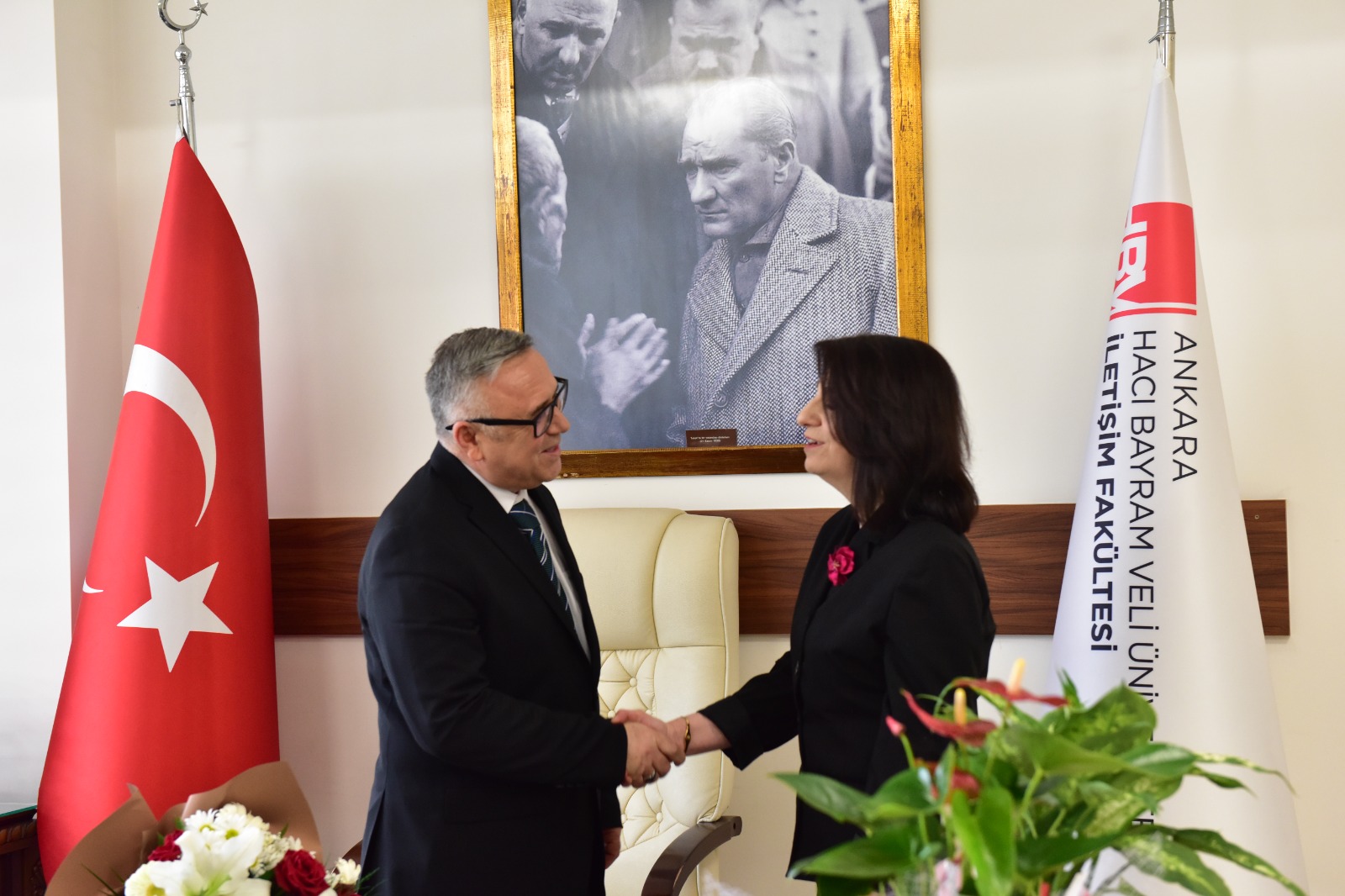 Ankara Hacı Bayram Veli Üniversitesi İletişim Fakültesi Dekanlığına Prof. Dr. Mehmet Sezai Türk atandı. Prof. Dr. Ayşe Elif Emre Kaya dekanlık görevini düzenlenen törenle Prof. Dr. Mehmet Sezai Türk’e devretti.
