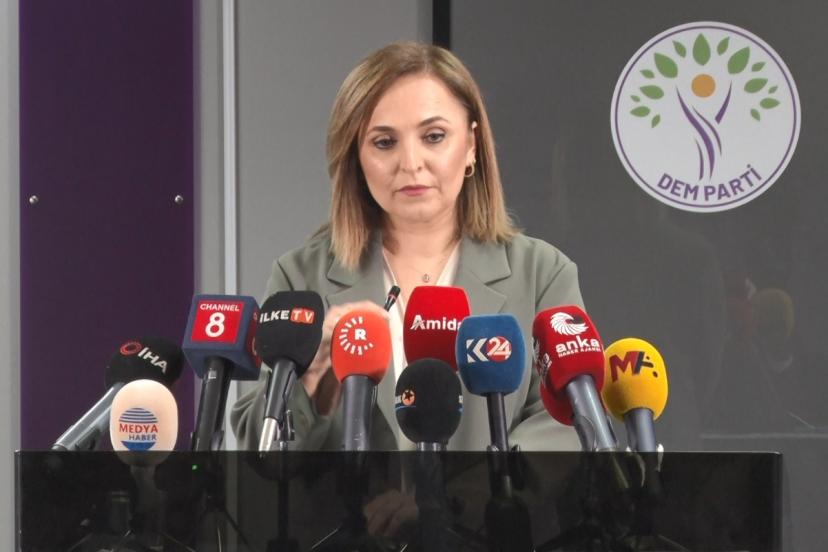 DEM Parti Sözcüsü Ayşegül Doğan, "Biz Öcalan’ın özgür bir şekilde çalışabileceği, yaşayabileceği, doğrudan temas kurabileceği iletişim şartlarının oluşturulması gerektiğini düşünüyoruz" dedi.