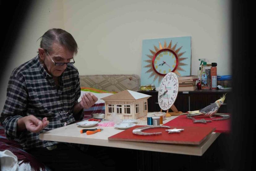 Bayburt Memnune Evsen Yaşlı Bakım ve Rehabilitasyon Merkezi sakinlerinden 74 yaşındaki Bülent Alemdar, pandemi döneminde tanıştığı el sanatlarıyla takı tasarımı, filografi ve maket alanında çalışmalar yapıyor. El emeği ürünler hazırlayan Alemdar, 6 yıldır üretmeyi sürdürüyor.