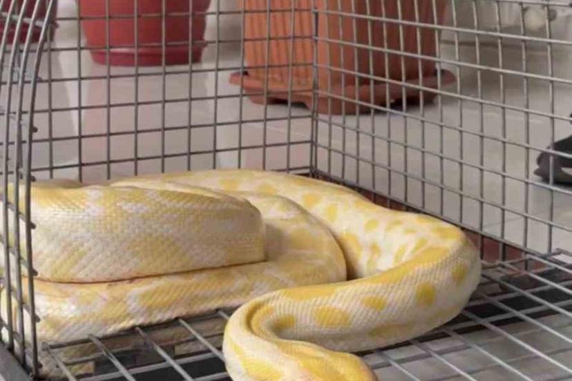 Denizli’de bir alışveriş merkezinde düzenlenen gösteride kullanılan Albino Burma Pitonu, yapılan denetimlerde gerekli izin belgelerinin bulunmadığının tespit edilmesi üzerine ekipler tarafından el konularak koruma altına alındı.