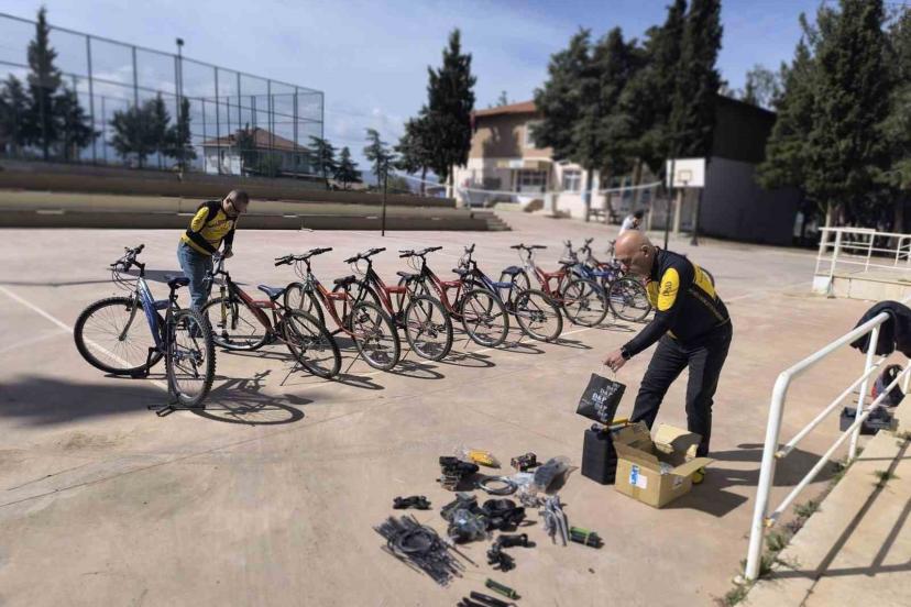 Denizli Bisikletliler Derneği üyeleri, "Mahalle Okullarındayız" projesi kapsamında Çal Sazak Ortaokulu’ndaki öğrencilerin atıl durumdaki bisikletlerini tamir ederek yeniden kullanıma kazandırdı.