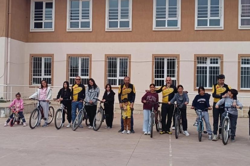 Denizli Bisikletliler Derneği üyeleri, "Mahalle Okullarındayız" projesi kapsamında Çal Sazak Ortaokulu’ndaki öğrencilerin atı...