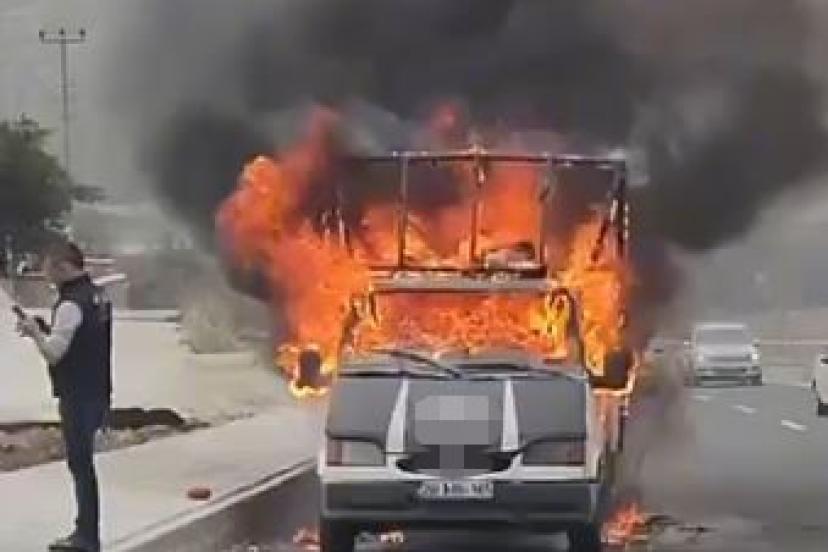 Yangın, Pamukkale ilçesi Cankurtaran Mahallesi’nde meydana geldi. Edinilen bilgilere göre, Denizli-Acıpayam kara yolunda seyir halindeki henüz plakası öğrenilemeyen ticari araçtan dumanlar yükselmeye başladı. Durumu fark eden sürücü, aracı yol kenarına çekerek kendini dışarı attı. Kısa sürede araç alevlere teslim olurken, çevredeki vatandaşların ihbarı üzerine bölgeye itfaiye ve polis ekipleri sevk edildi. İtfaiye ekiplerinin çalışmaları sonucu yangın kontrol altına alınarak söndürüldü. Ticari aracın kullanılamaz hale geldiği yangınla ilgili inceleme başlatıldı.