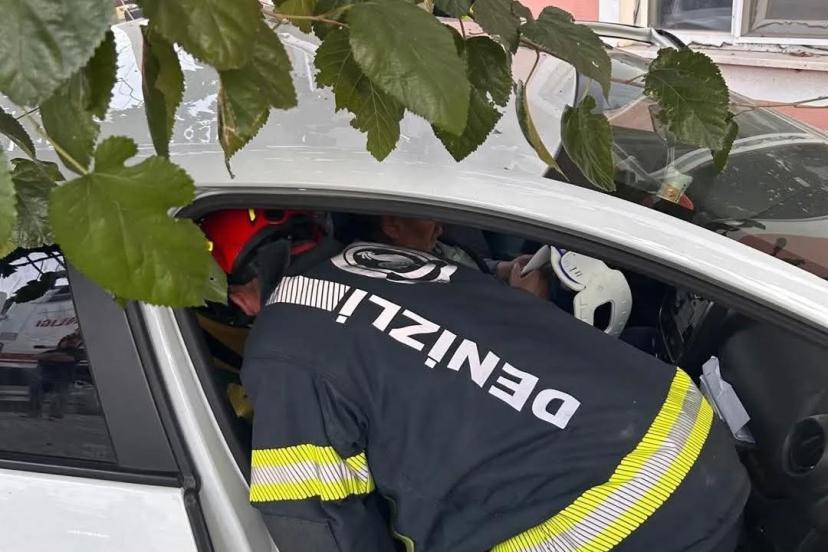 Denizli’de sürücünün direksiyon hakimiyetini kaybettiği otomobil önce ağaca ardından bir evin duvarına çarparak durabildi.