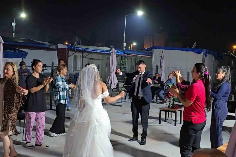 Hatay’ın İskenderun ilçesinde depremde enkazdan kurtarılan Recep Sezgin, hayatını sosyal medya üzerinden tanıştığı Seda ile konteyner kentte yapılan düğünle birleştirdi. Maddi imkansızlıklarından ve yakınlarının olmamasından dolayı düğün yapamayan çiftin düğünü konteyner kent içerisinde komşuları tarafından gerçekleştirildi.