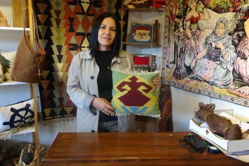 Dedesinden aldığı ilhamla 30 yıldır kilim dokumacılığı yaparak kadının kendi ayakları üzerinde durabileceğini gösteren Ferdali Bostancı, "Ben 30 yıldır kilim dokuma ustasıyım. Dede mesleğini daha geniş çaplı nesillere aktarabilmek için 1994’te bu sanatın okulunu okudum. Dedem eskiden hasır işlerdi, biz küçükken merakla da onu sürekli izlerdik. Çocukluğumdan aklımda kalan bu mesleği ileride üniversitesini okuyup icra edeceğimi açıkçası düşünmemiştim. Depremden sonra tekrar mesleğime kavuşmak ve özellikle şu an sanat çarşısında küçücük de olsa bir dükkanın verilmesi kendi mesleğimi icra edip bunu gelecek nesillere aktarıp bunun için bir imkan sunulması için bize sunulduğundan kaynaklı gerçekten terapi gibi geldi. Kadın öncelikle her şekilde kendi ayaklarının üstünde durur. Bunu her şekilde görüyoruz ve aslında her kadın çok güçlüdür. Yeter ki hiçbir yerden kösteklenmesin ve kendi çabalarıyla düştüğü yerden tek başına kalkabilen bir güce sahiptir. Kadınlar çok zorluklar çekerek bugüne varabilir. Beni destekleyen bir eşim var. Ümit ediyorum ki bütün kadınlara da aynı şekilde belli bir yardım beklemeden kendi seslerini çıkarmak ve kendi güçleriyle ortaya koyabilmek" dedi.