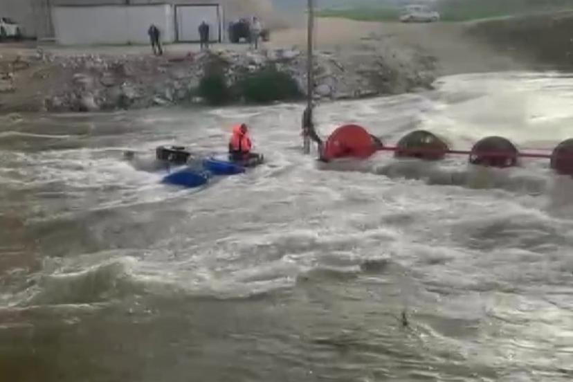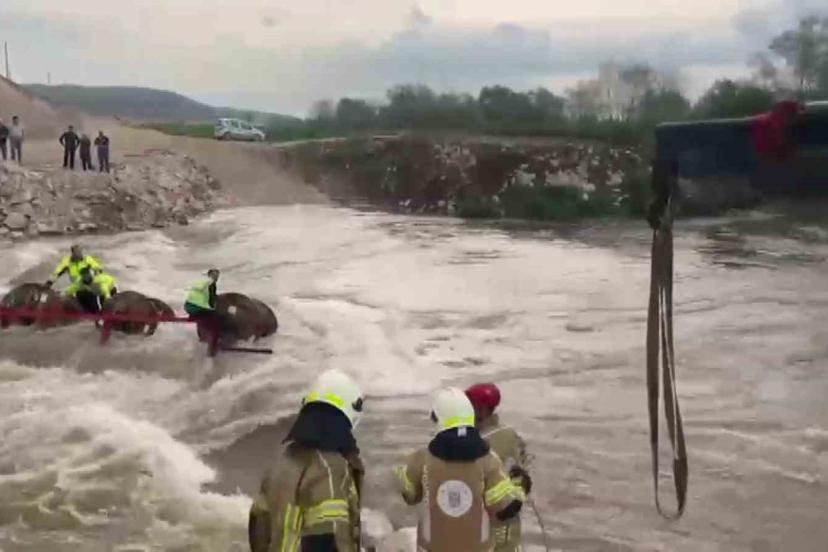 Dereyi traktörle geçmek isterken faciadan dönüldü: 10 işçi vinçle kurtarıldı