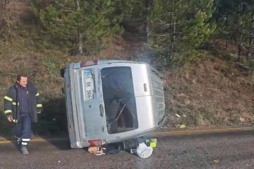 Devrilen hafif ticari aracın sürücüsü yaralandı