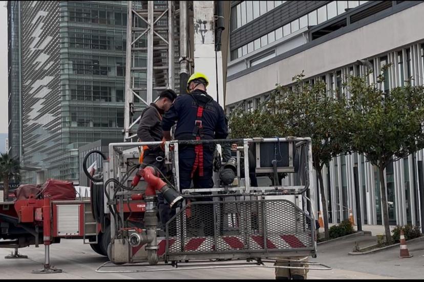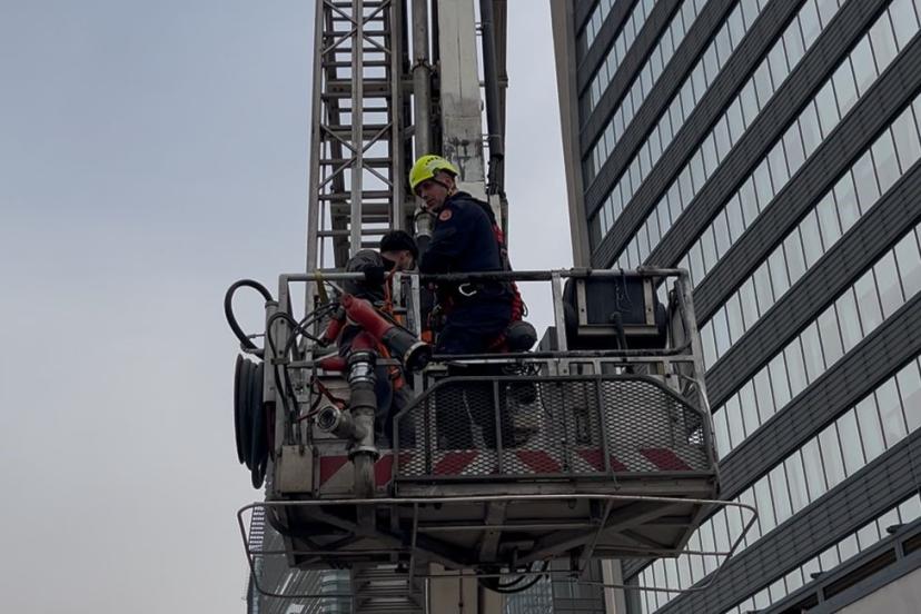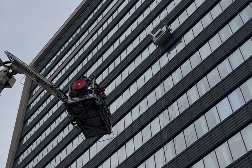 Dış cephede cam silerken asansör sistemi arıza yapınca mahsur kaldılar: İtfaiyenin müdahalesiyle kurtarıldılar