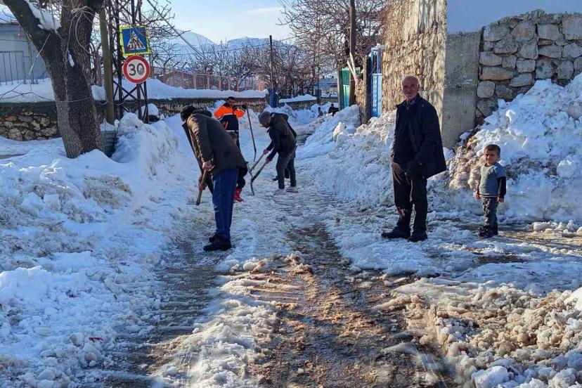 Diyarbakır’da vatandaşlar karla kapanan yolları kendi imkanları ile açtı