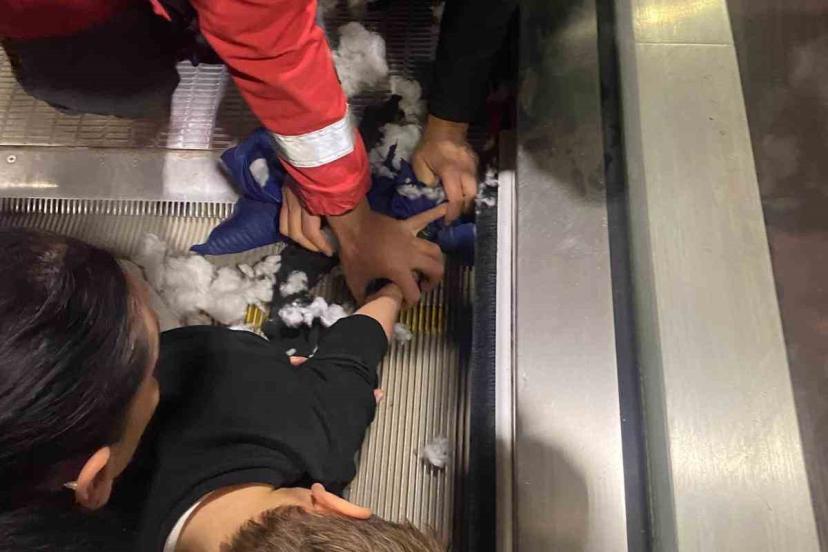 Muğla’nın Menteşe ilçesinde alışveriş merkezine arkadaşının doğum gününü kutlamak için gelen 5 yaşındaki çocuğun eli yürüyen merdivene sıkıştı.