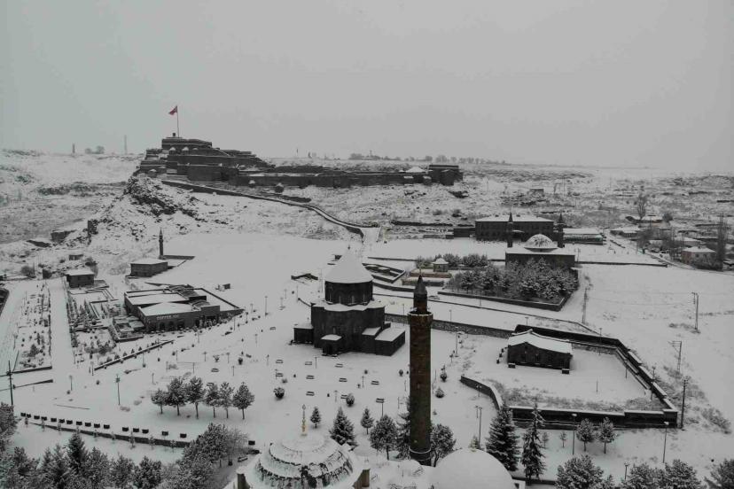 Hava sıcaklıklarının mevsim normallerinin altına düşmesiyle birlikte başlayan kar yağışı, Kars’ı adeta bir tabloya dönüştürdü. Özellikle Kars Kalesi, Ebu’l Menucehr Camii ve tarihi Rus mimarisi yapıları, beyaz örtüyle birlikte kartpostal görüntüler ortaya çıkardı.
