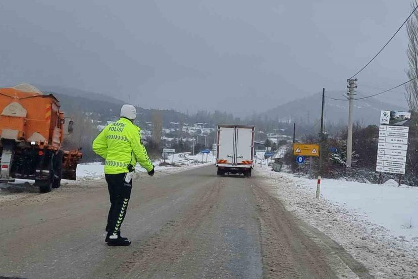 Kar yağışı nedeniyle dağ yolunda trafik güvenliği için önlemler artırılırken, ağır tonajlı araçların ve kış lastiği bulunmayan araçların geçişine izin verilmedi. Karayolları ekipleri, yolun açık kalması için bölgede aralıksız kar küreme ve tuzlama çalışması yürütüyor.