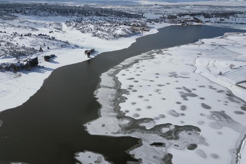 Tarihi yaklaşık 3000 bin yıl öncesine dayanan Frig Vadisi’ndeki Emre Gölü dondu. İhsaniye ilçesinde yağan karın ardından hava sıcaklıklarını sıfırın altında eksi 7 derecelere kadar düşmesi sonrası göl dondu. Donan göl yanı başındaki Frigler’den kalma eserler ile kartpostallık manzaralar açığa çıkardı. Buz tutmuş göl ve eserler seyrine doyumsuz bir manzara oluşturdu.