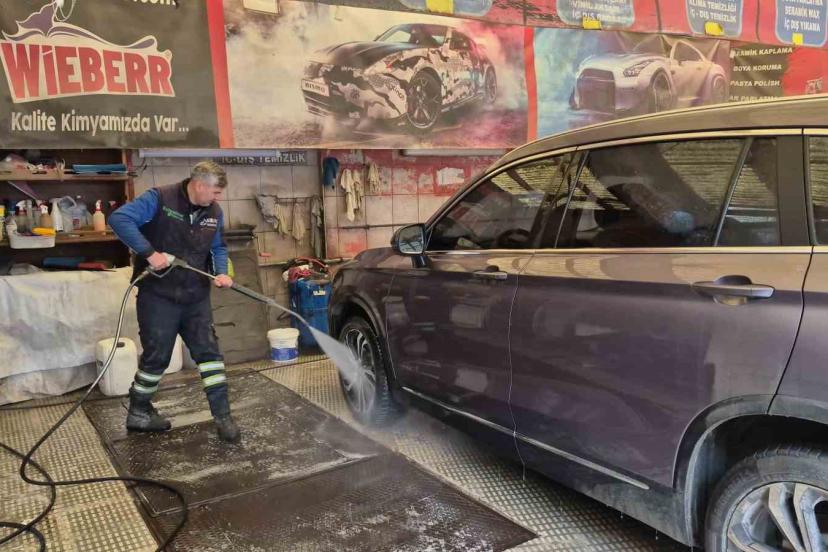 Hava sıcaklıklarının düşmesiyle birlikte zor günler geçiren oto yıkama esnafı, bir yandan dondurucu soğuklar nedeniyle tesisatın donmaması için önlem alırken bir yandan da araçların altındaki gizli tehlike olan ’tuz kalıntılarına’ karşı uyarılarda bulunuyor.