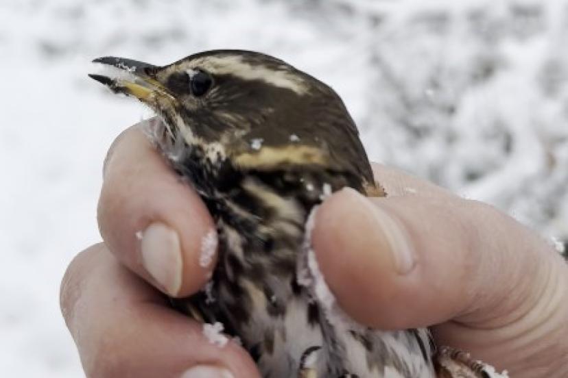 Donmak üzere olan kuşu aracına alarak ısıttı