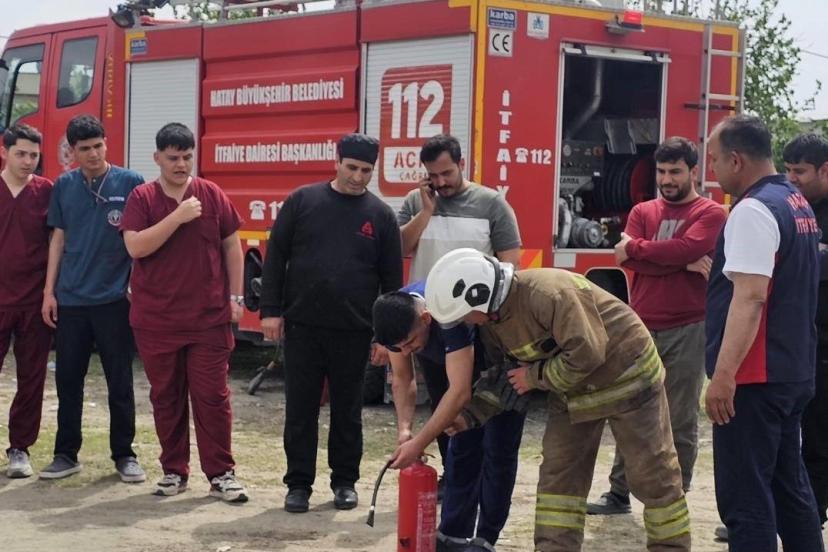 Teorik eğitimin ardından gerçekleştirilen uygulamalı tatbikatta, personel yangın söndürme cihazlarını kullanarak müdahale pratiği yaptı. Böylece edinilen bilgilerin sahada uygulanması sağlandı.