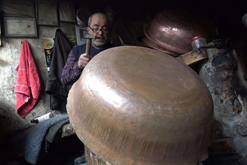 Gaziantep’te dövme bakır kazanlar, özellikle Türkiye’de köklü bir mutfak ve el sanatı geleneği olarak geleneksel yöntemlerle ...
