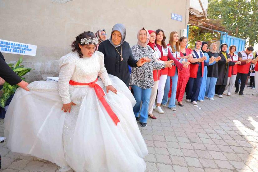 Dulkadiroğlu ilçesi Erkenez Mahallesi’nde yaşayan Hacer ve Sayit Demircik çiftinin 33 yaşındaki kızı Melek için, Kahramanmaraş Büyükşehir Belediye Başkanı Fırat Görgel’in talimatlarıyla unutulmaz bir düğün organizasyonu düzenlendi. Ailenin evinin bahçesinde yapılan etkinlikte müzikler çalındı, oyunlar oynandı, kına yakıldı ve Melek’in mutluluğu yüzüne yansıdı. Düğüne mahalle sakinleri ve yakın akrabalar da katılarak Melek’in sevincine ortak oldu. Belediye Sağlık ve Sosyal Hizmetler Daire Başkanlığı Engelliler Şube Müdürlüğü koordinesinde gerçekleştirilen organizasyona, birimin çatısı altında faaliyet gösteren gönüllü gençlik hareketi üyeleri de destek verdi. Gençlerin katkısıyla süslenen alan ve hazırlanan etkinliklerle Melek’in hayali adeta bayram havasında kutlandı.