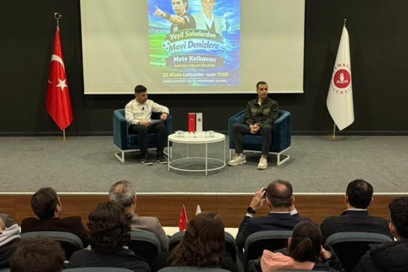 FIFA kokartlı eski hakem Mete Kalkavan, söyleşide hakemlikten iş dünyasına ve denizcilik sektörüne uzanan kariyer sürecini anlattı. Sahalarda kazandığı karar verme, zaman yönetimi, disiplin ve adalet anlayışının iş hayatına doğrudan yansıdığını belirten Kalkavan, iyi bir yöneticinin adil olması, doğru iletişim kurması ve zamanı etkin kullanması gerektiğini vurguladı. Öğrencilerin soruları üzerine hakemlik döneminden örnekler paylaşan Kalkavan, zorlu anlarda doğru karar alabilmenin sabır ve güçlü bir sorumluluk bilinci gerektirdiğini ifade etti.