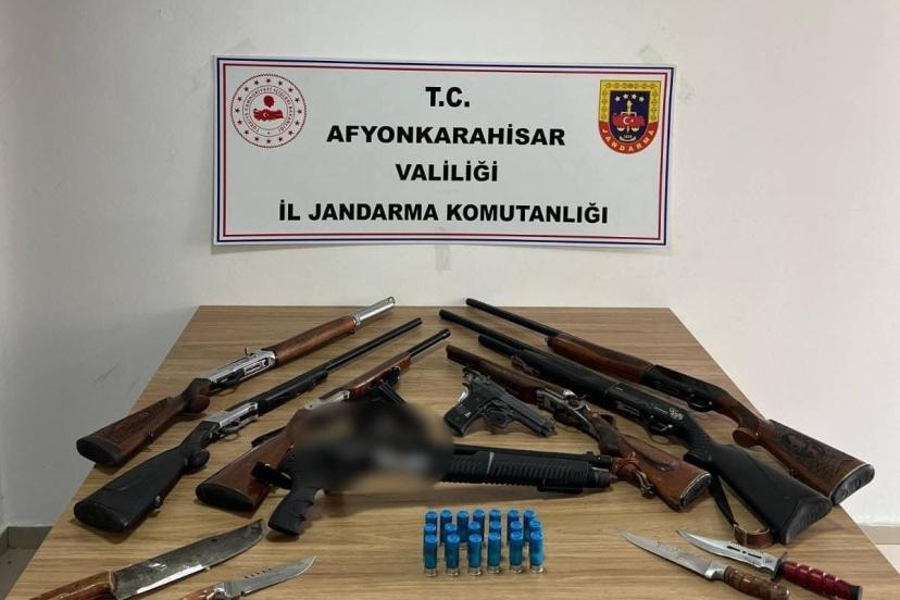 Edinilen bilgilere göre, Afyonkarahisar İl Jandarma Komutanlığı ekipleri tarafından düğün ve eğlencelerde havaya ateş açarak genel güvenliği kasten tehlikeye sokan şahıslara yönelik operasyon yapıldı. Operasyonda yapılan aramada 2 adet kuru sıkı tabanca, 5 adet ruhsatsız av tüfeği, 2 adet ruhsatlı av tüfeği, 48 adet 12 kalibre çapında av tüfeği fişeği ve 3 Adet 6136 sayılı kanun çerçevesinde olduğu değerlendirilen bıçak ele geçirildi. Operasyon sonrası İ.K., İ.D., R.T, O.T., M.K., A.D ve M.G. isimli şahıslar gözaltına alındı.