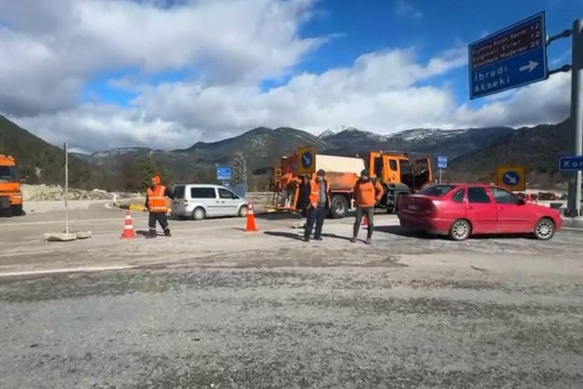 Antalya Taşağıl istikametinden bu güzergâhı kullanan sürücüler, İbradı ilçesi Başlar Mahallesi kavşağında Karayolları ekipleri tarafından durdurularak Beyşehir yönüne giden yola geçişleri kapatılıyor ve trafik Akseki istikametine yönlendiriliyor.