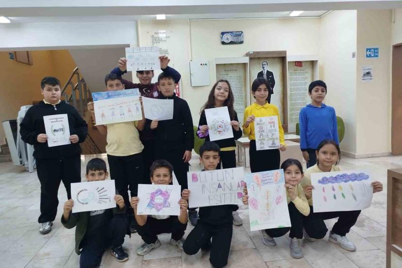 İlçe Halk Kütüphanesindeki etkinlikte öğrenciler, insan hakları konusunda resimler çizerek duygu ve düşüncelerini sanat çalışmalarıyla ifade etti. Ayrıca kütüphane içerisinde hazırlanan insan hakları konulu kitap sergisi öğrenciler tarafından incelenerek temel hak ve özgürlükler hakkında bilinç kazanmalarına katkı sağlandı.