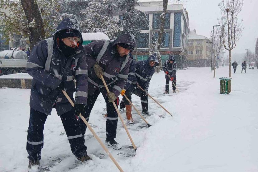 DÜZCE(İHA) –Düzce’de etkisini artıran yoğun kar yağışı nedeniyle Düzce Belediyesi ekipleri sahadaki çalışmalarına aralıksız devam ediyor.