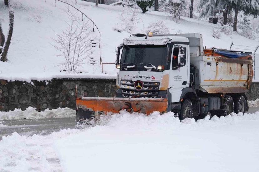 Düzce’de belediye ekipleri kar yağışıyla birlikte sahaya indi