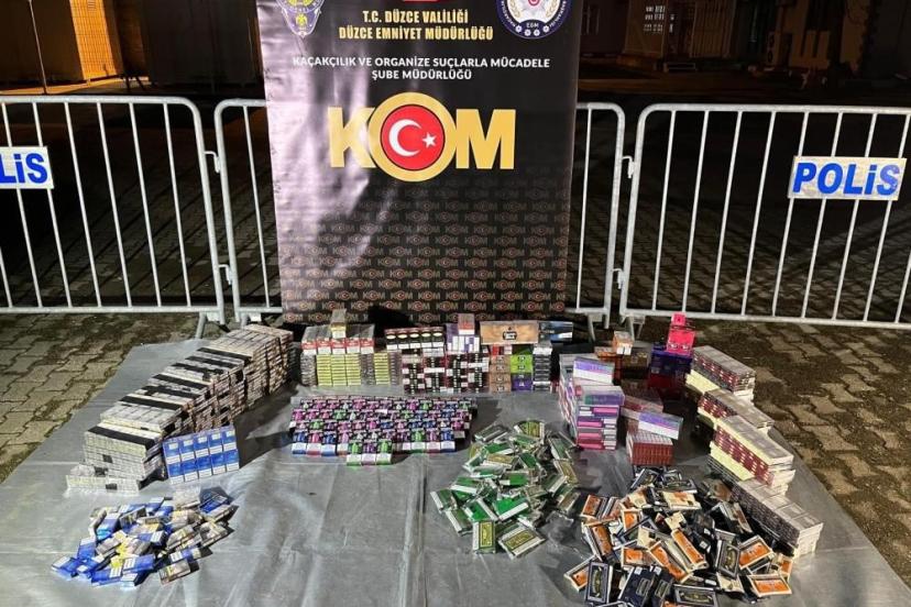 Düzce’de polis ve jandarma ekipleri, yapılan operasyonlarda kaçakçılara göz açtırmıyor. Ekipler tarafından yapılan çalışmada kaçak tütün, elektronik sigara ele geçirildi.