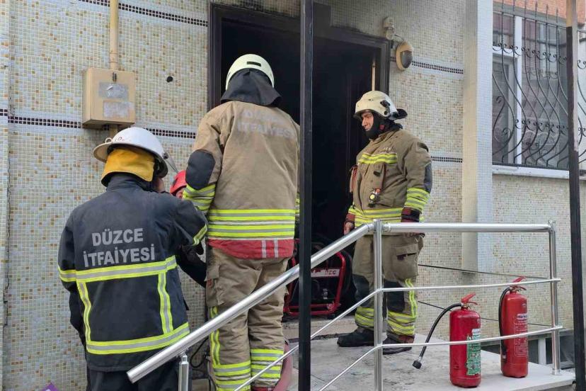 Düzce’nin Şerefiye Mahallesi’nde sabah saatlerinde elektrik panosunda çıkan yangın, apartman sakinlerini yataklarından kaldırdı. Yangında bina duman altında kaldı.