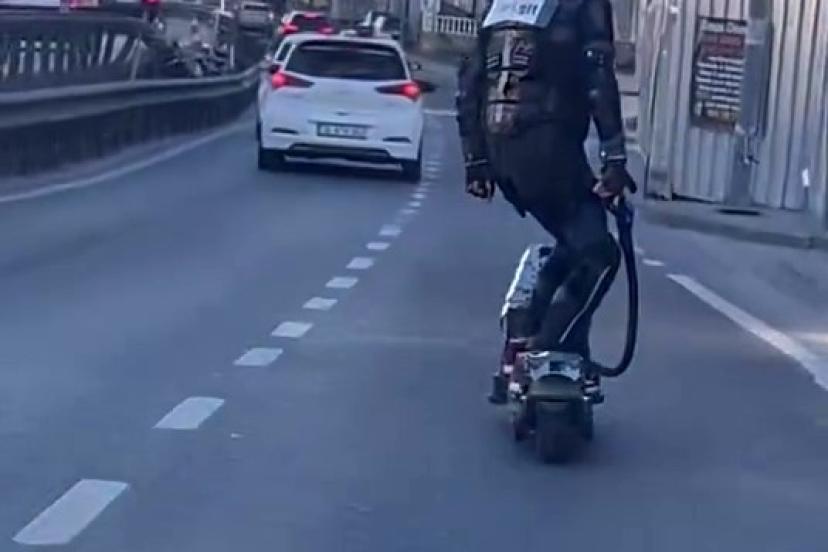 Bir vatandaşın E-5 Haramidere’den Avcılar’a kadar scooter yolculuğu görenleri şaşırttı. Uzun süre araçların arasında ilerleyen sürücü, keyifle yolculuk yaptı. Yaşanan o sıra dışı yolculuk anları ise kameraya yansıdı.