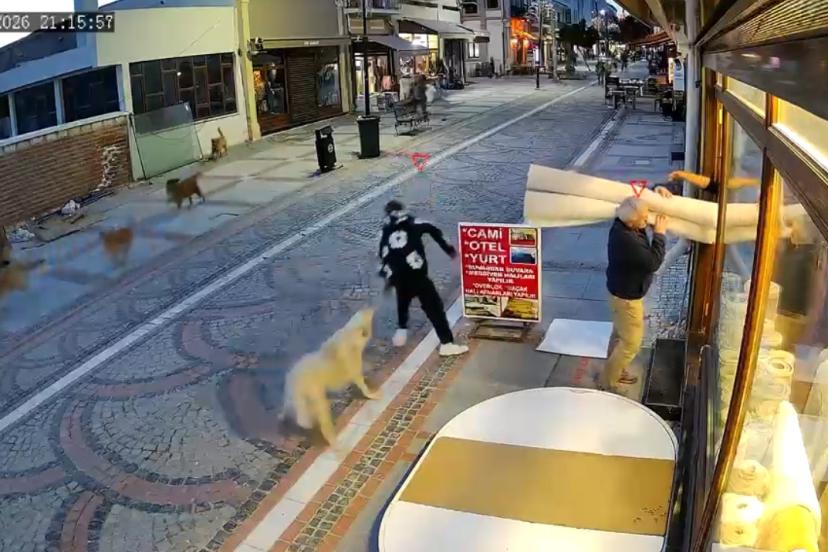 Yaşanan panik anları çevredeki bir iş yerinin güvenlik kamerasına yansıdı. Görüntülerde, Hamza D.’nin köpeklerden kaçarak bir iş yerine sığındığı görüldü.