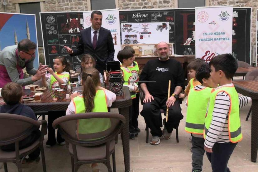 Edirne’de 50. Turizm Haftası etkinlikleri çerçevesinde düzenlenen özel atölyede çocuklar, geleneksel kültürle iç içe unutulma...