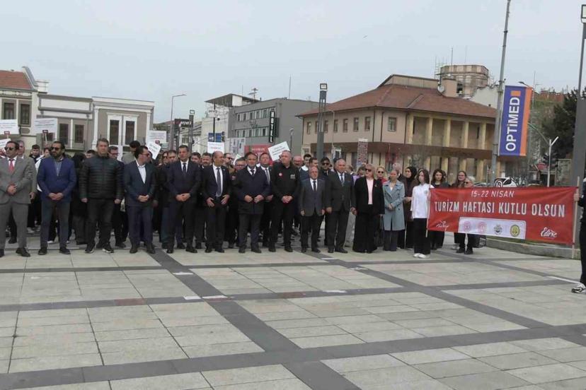 Edirne’de 50’inci Turizm Haftası etkinlikleri çerçevesinde tören düzenlendi. 25 Kasım Stadyumu önünde oluşturulan kortej, bando eşliğinde Saraçlar Caddesi’nden Atatürk heykeline kadar yürüyüş yaptı. İl Kültür ve Turizm Müdürü Kemal Soytürk’ün çelenk sunumunun ardından bando eşliğinde saygı duruşunda bulunularak, İstiklal Marşı okundu.
