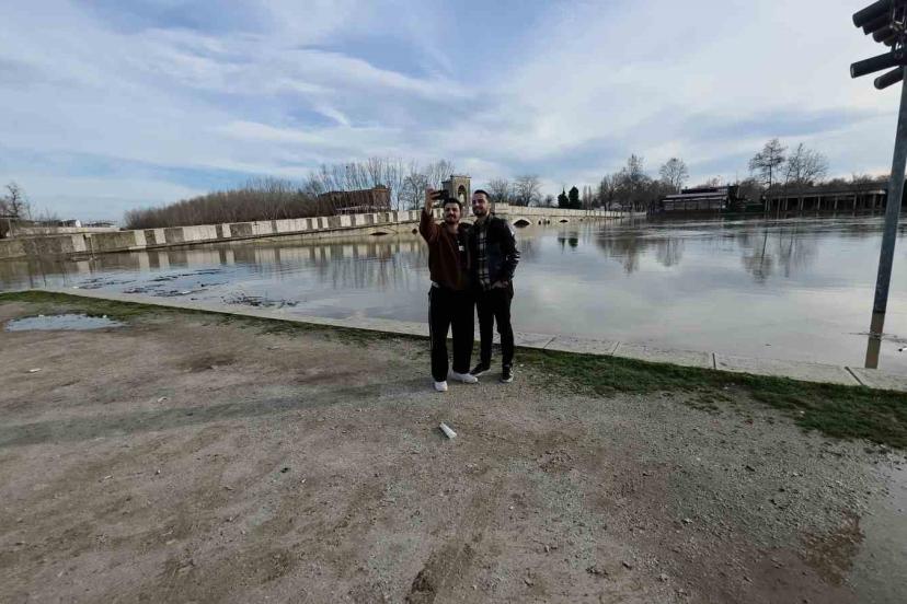 Edirneliler taşkın riski bulunan nehir kenarına akın etti