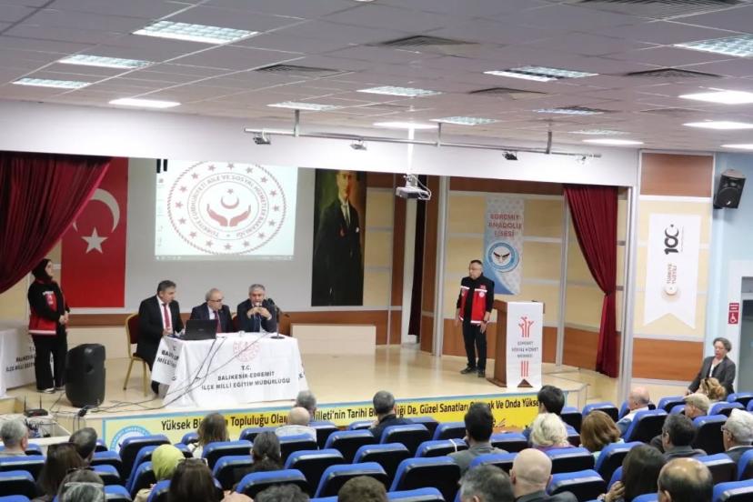 Toplumsal farkındalığı artırmak amacıyla düzenlenen toplantıya; Edremit İlçe Sosyal Hizmet Merkezi Müdürü Bayram Karayel, İlçe Millî Eğitim Müdürü Ramazan Esmen, Şube Müdürü Mesut Polat ile çok sayıda okul ve kurum yöneticisi ile rehber öğretmenler katılım sağladı.