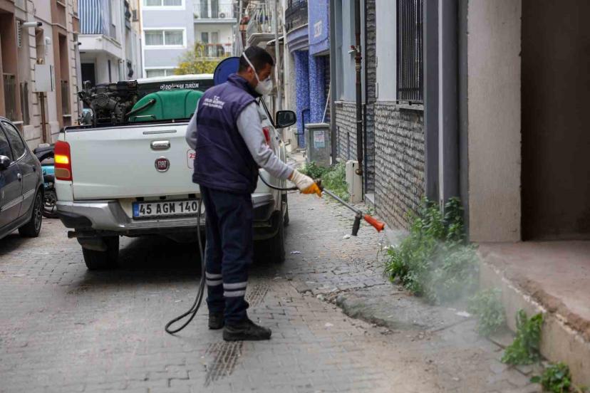 Özellikle bahar aylarının gelmesiyle birlikte hız kazanan çalışmalar kapsamında, sokak araları ve kaldırımlarda kendiliğinden çıkan yabancı otlar ekipler tarafından titizlikle temizleniyor.