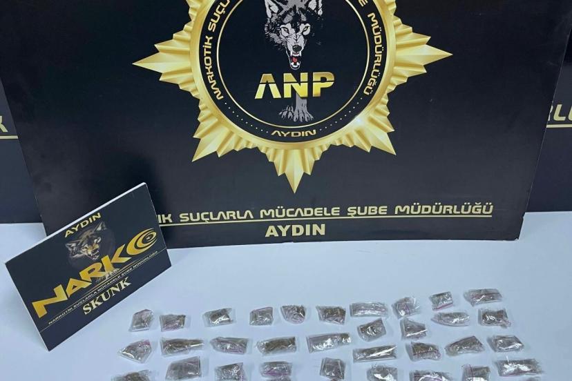 Aydın İl Emniyet Müdürlüğü Narkotik Suçlarla Mücadele Şube Müdürlüğü ekipleri, uyuşturucu madde ticareti ve kullanımını önlemeye yönelik çalışmalarını aralıksız sürdürüyor. Edinilen bilgiye göre, narkotik ekipleri tarafından Osman Yozgatlı Mahallesi’nde bir şahsın üzerinde, ikametinde ve aracında yapılan aramada 54 parça halinde toplam 50 gram skunk maddesi ele geçirildi.Operasyon kapsamında gözaltına alınan B.B. (24) isimli şüpheli, emniyetteki işlemlerinin ardından sevk edildiği adli makamlarca uyuşturucu madde ticareti yapmak suçundan tutuklanarak cezaevine gönderildi.