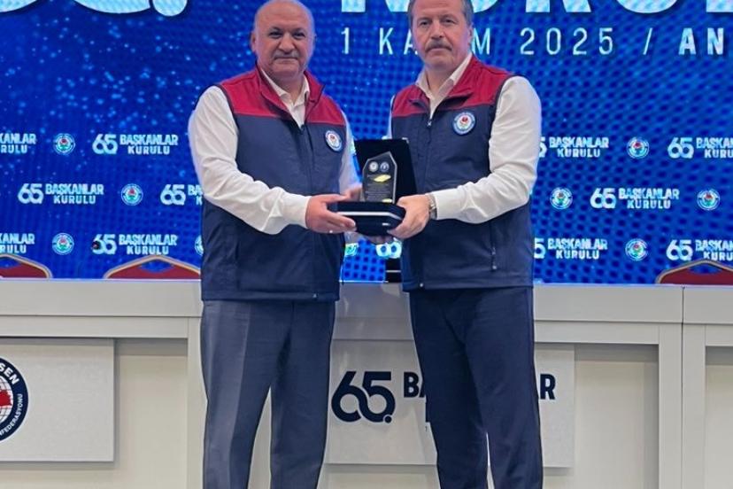 Eğitim Bir Sen Antalya Şubesi, kısa sürede yeni üye hedefine ulaştığı ve sendikal mücadeleye ciddi bir destek verdiği için Memur Sen Genel Başkanı Ali Yalçın tarafından teşekkür plaketi ile ödüllendirildi.
