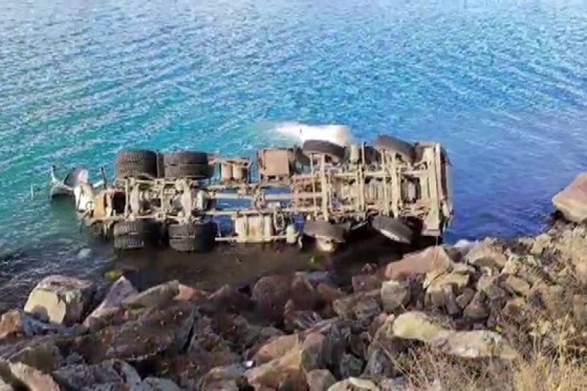 Elazığ’nın Sivrice ilçesinde sürücüsünün direksiyon hakimiyetini kaybettiği beton mikseri, Hazar Gölü’ne uçtu.