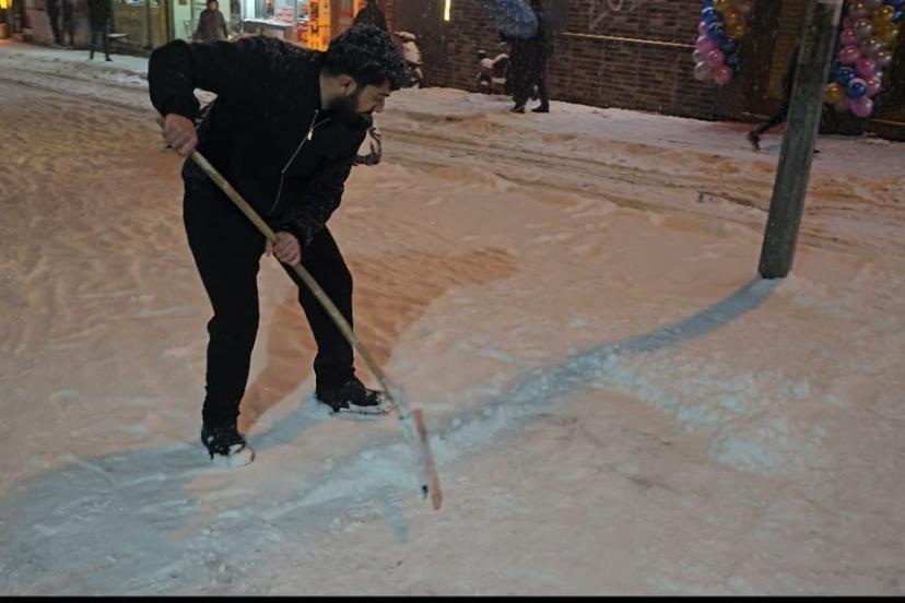 Elazığ’da etkili olan kar yağışının ardından esnaflar iş yerlerinin önünde biriken karları temizlemek için çalışma başlattı.